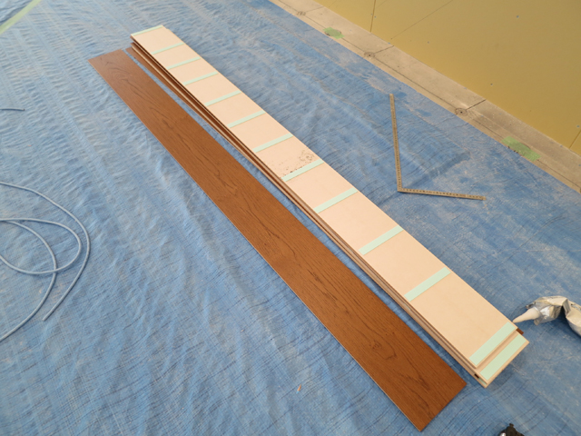 現場で長さをカットし、木材のサイズ及び貼り合わせラインの位置が