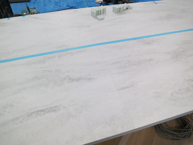 W4800D900のカウンターに人工大理石の天板を設置しているところです。