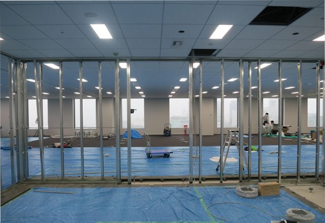 軽量下地の段階から壁全体の納まりに影響するのでとても重要な作業です。