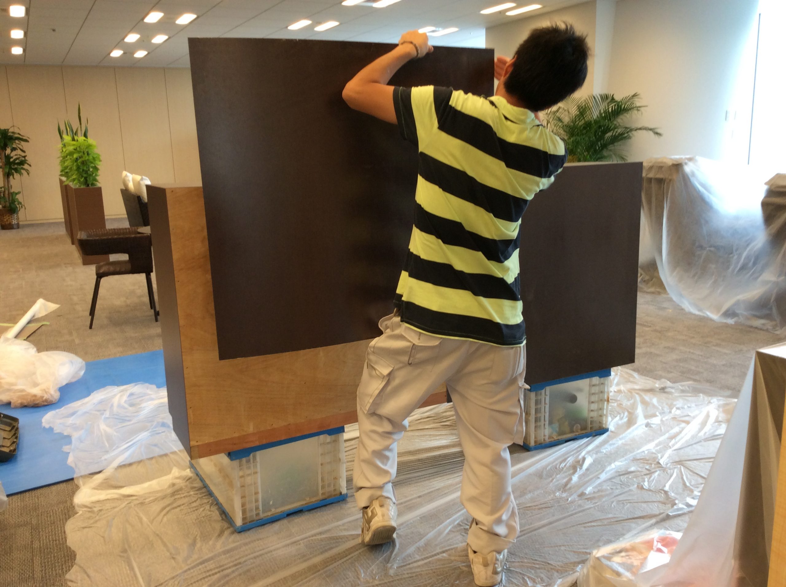今回位置を移動することで背面にメラミン材を貼りました。