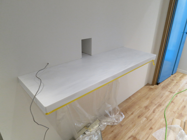 ほんのりグレーが混じった人工大理石を使用しているので、白い壁面に同化されることなく