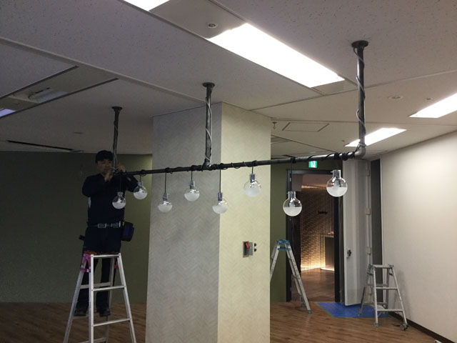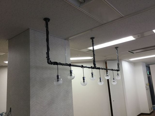 今回は、照明取り付け用に天井にスチールパイプを設置しました。