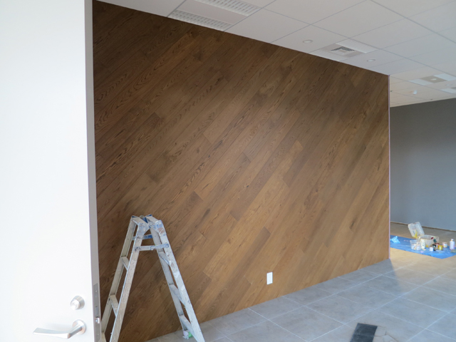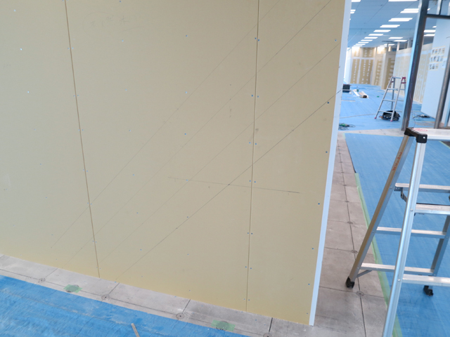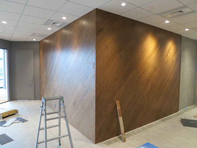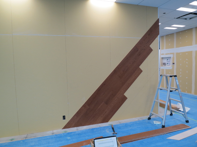 壁面の仕上げに不燃木材を使用しました。