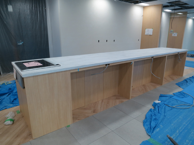 W4800D900のカウンターに人工大理石の天板を設置しているところです。