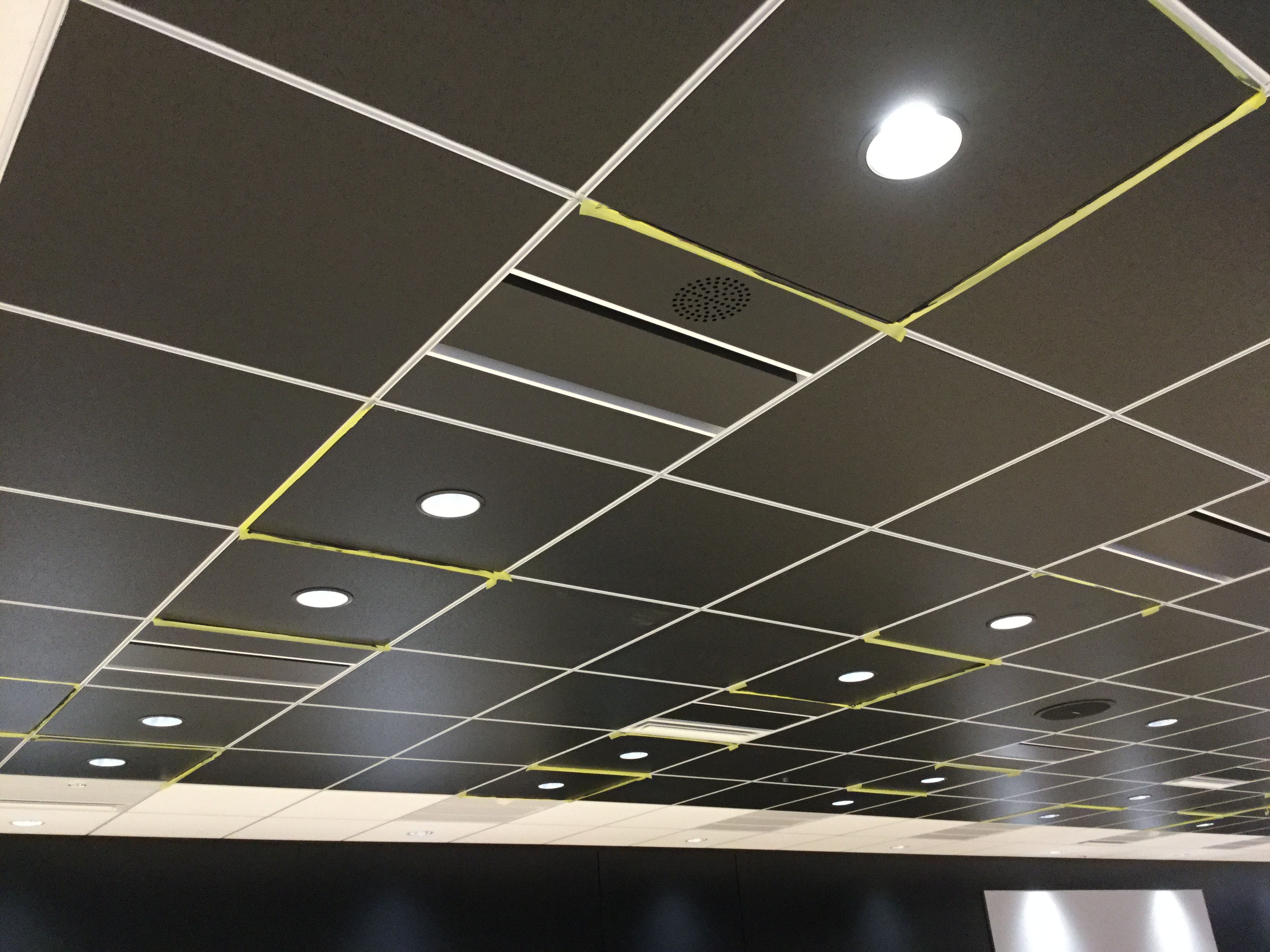 天井材をまず外します、元の場所に元のパネルを戻さないといけないこと、