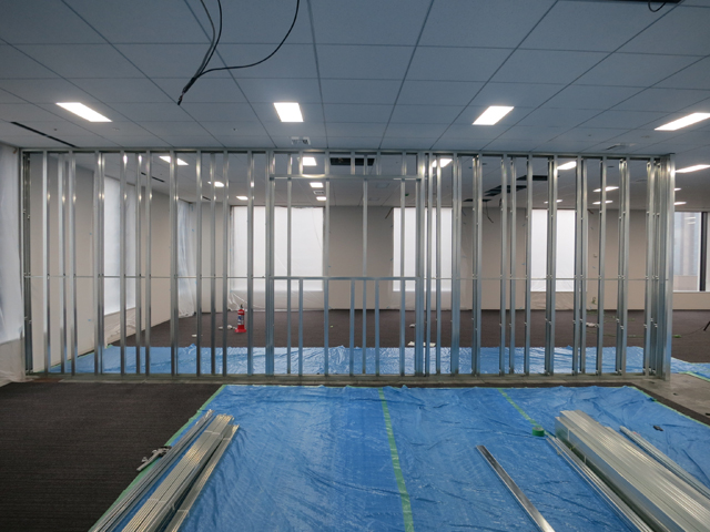 軽量下地の段階から壁全体の納まりに影響するのでとても重要な作業です。