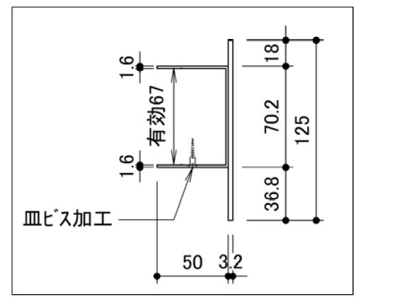 ■(※1)三方見切り金物:st FB 幅125 t3.2 + st t1.6 コの字金物(溶接)+