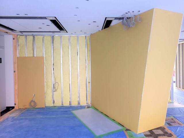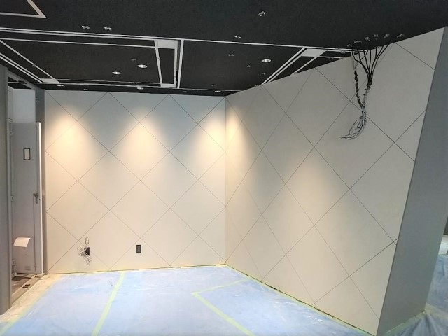 入隅や壁傾斜部の端部の納まりが綺麗に見えるよう目地幅にも注意しながら施工致しました。