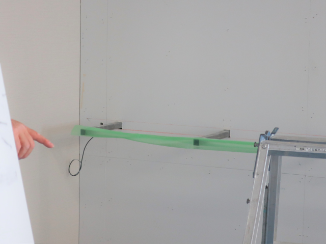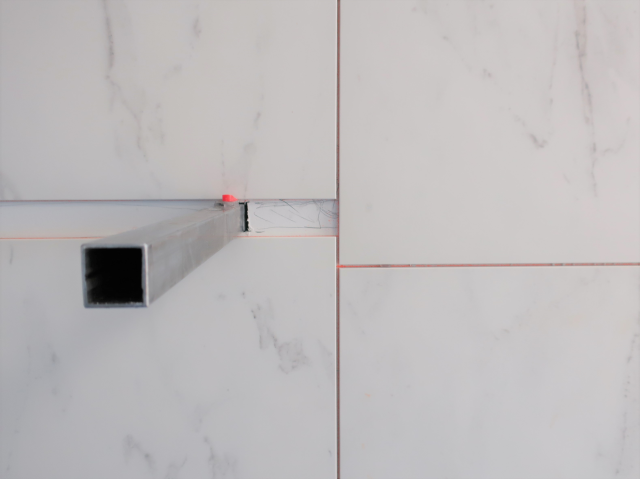 固定するために必要な物となります、これを基準に墨出しを大判タイルを施工していきます。