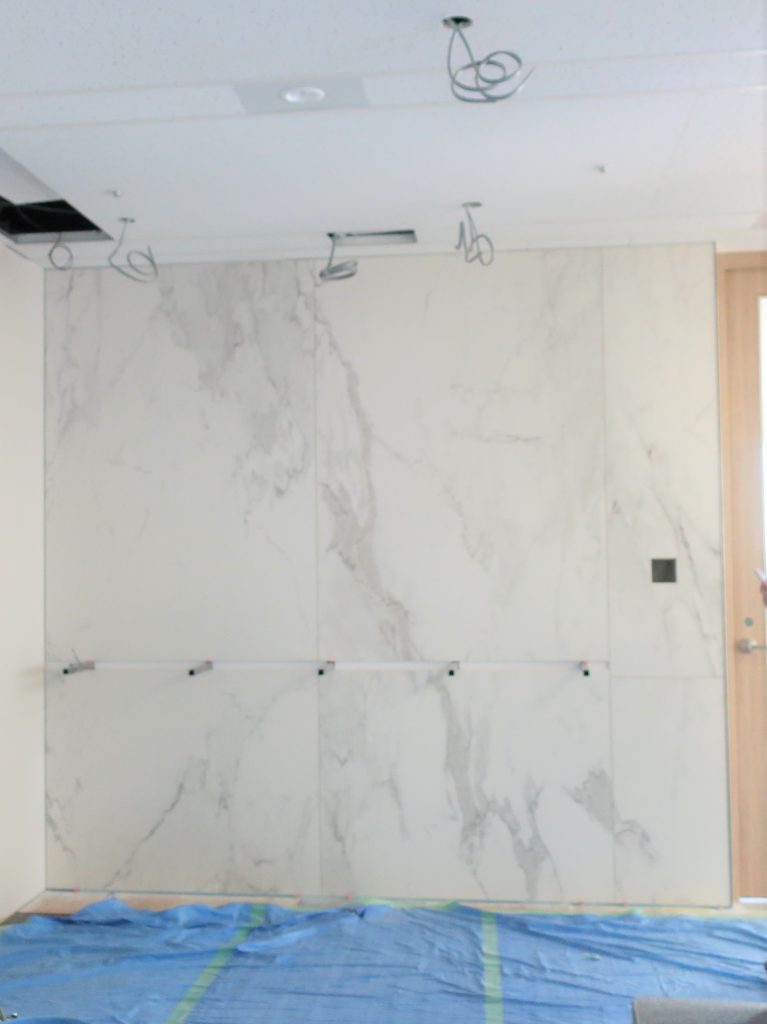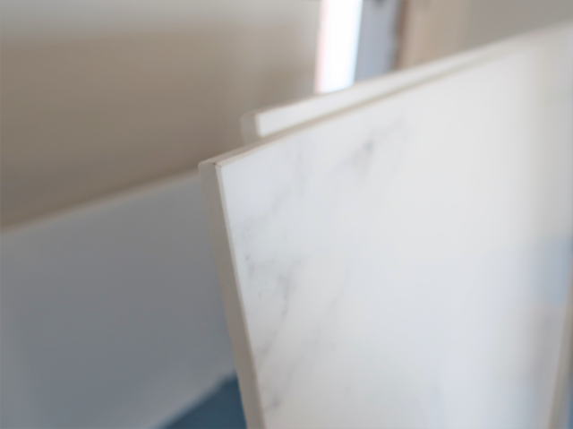 天然石の石目を忠実に再現しており、継ぎ目のない大判タイルによって