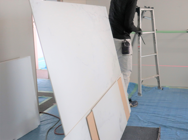 写真1)は、搬入された大判タイルです。