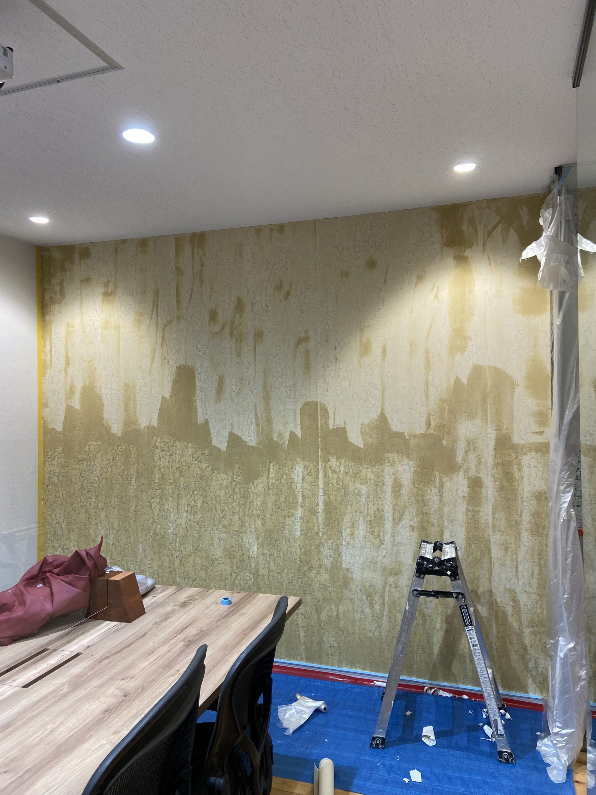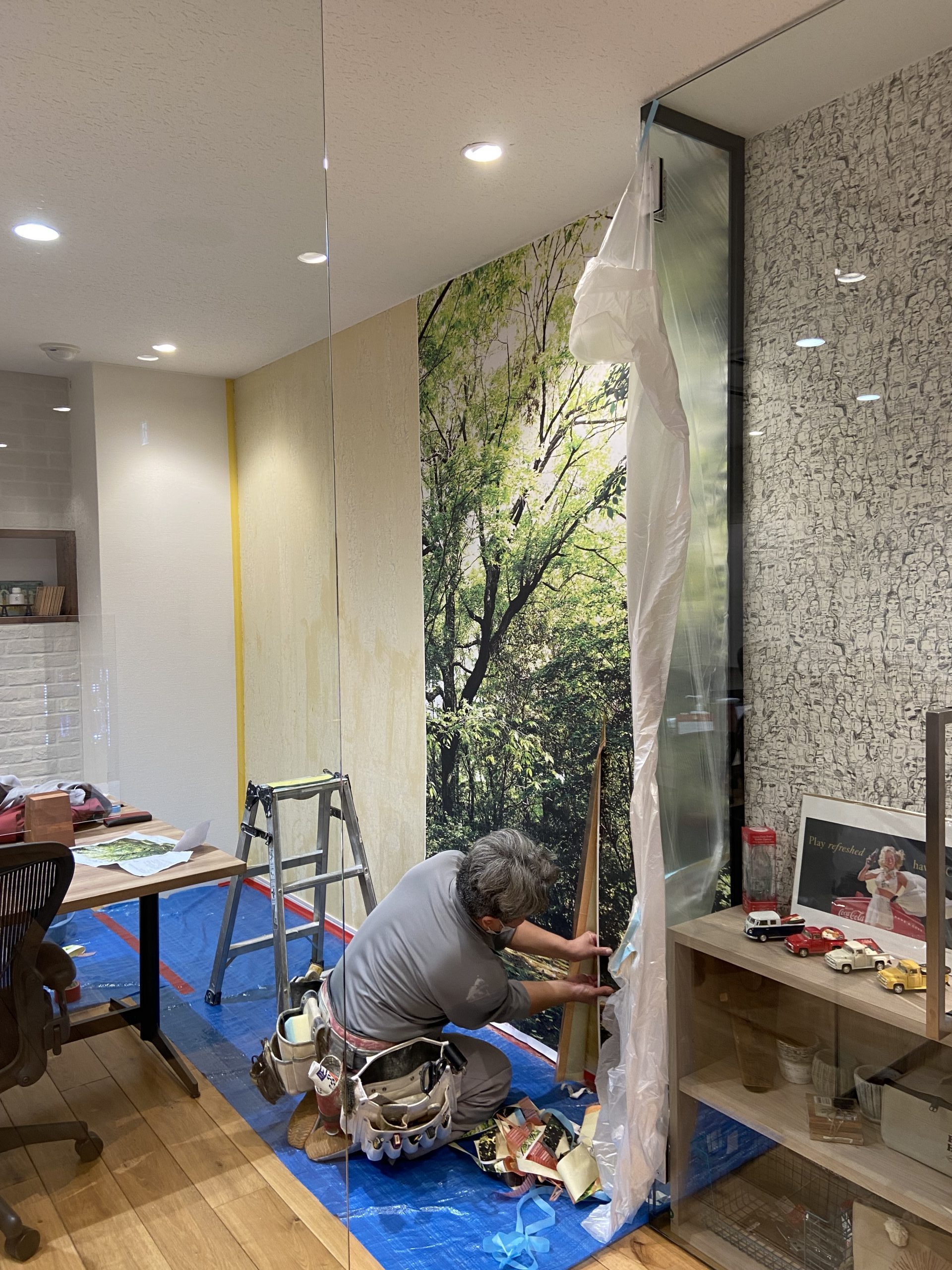 クロス貼りを綺麗に仕上げる為に、職人さんのプロの技術で丁寧に作業していきます。