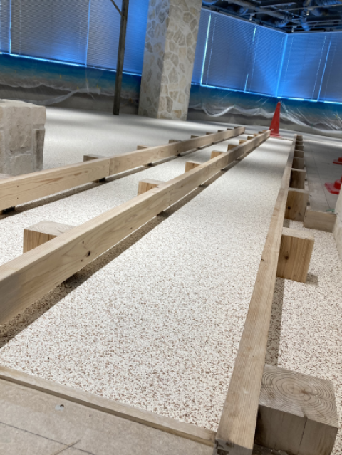 ビーチ風に砂浜をイメージしたゴムチップを敷きました。