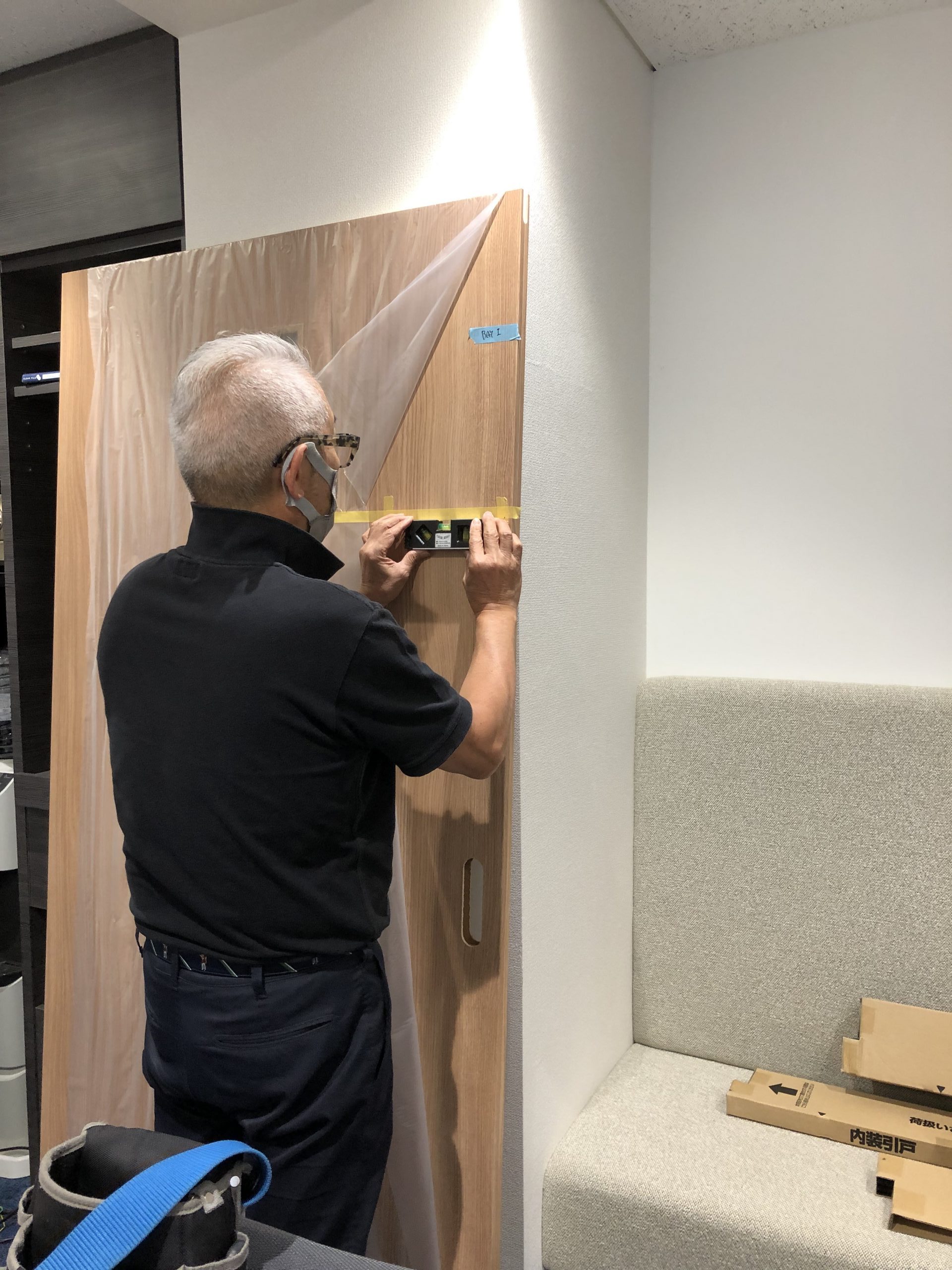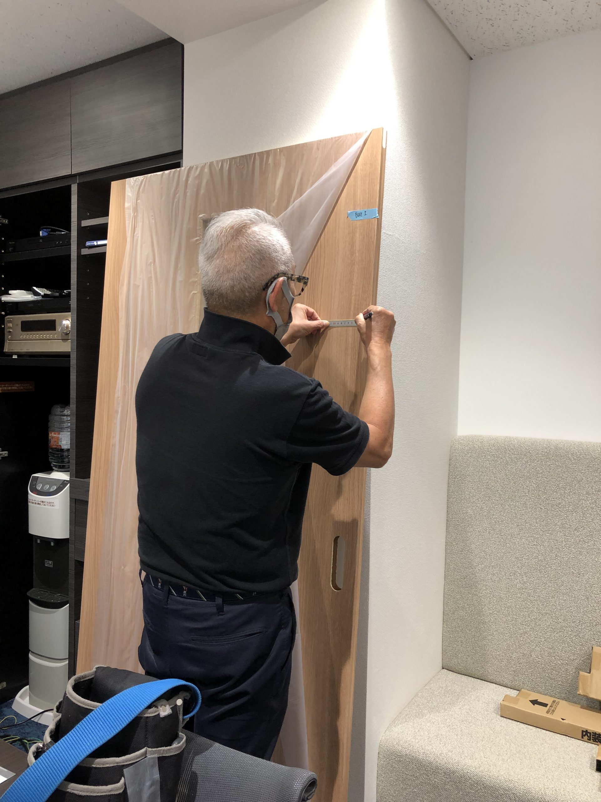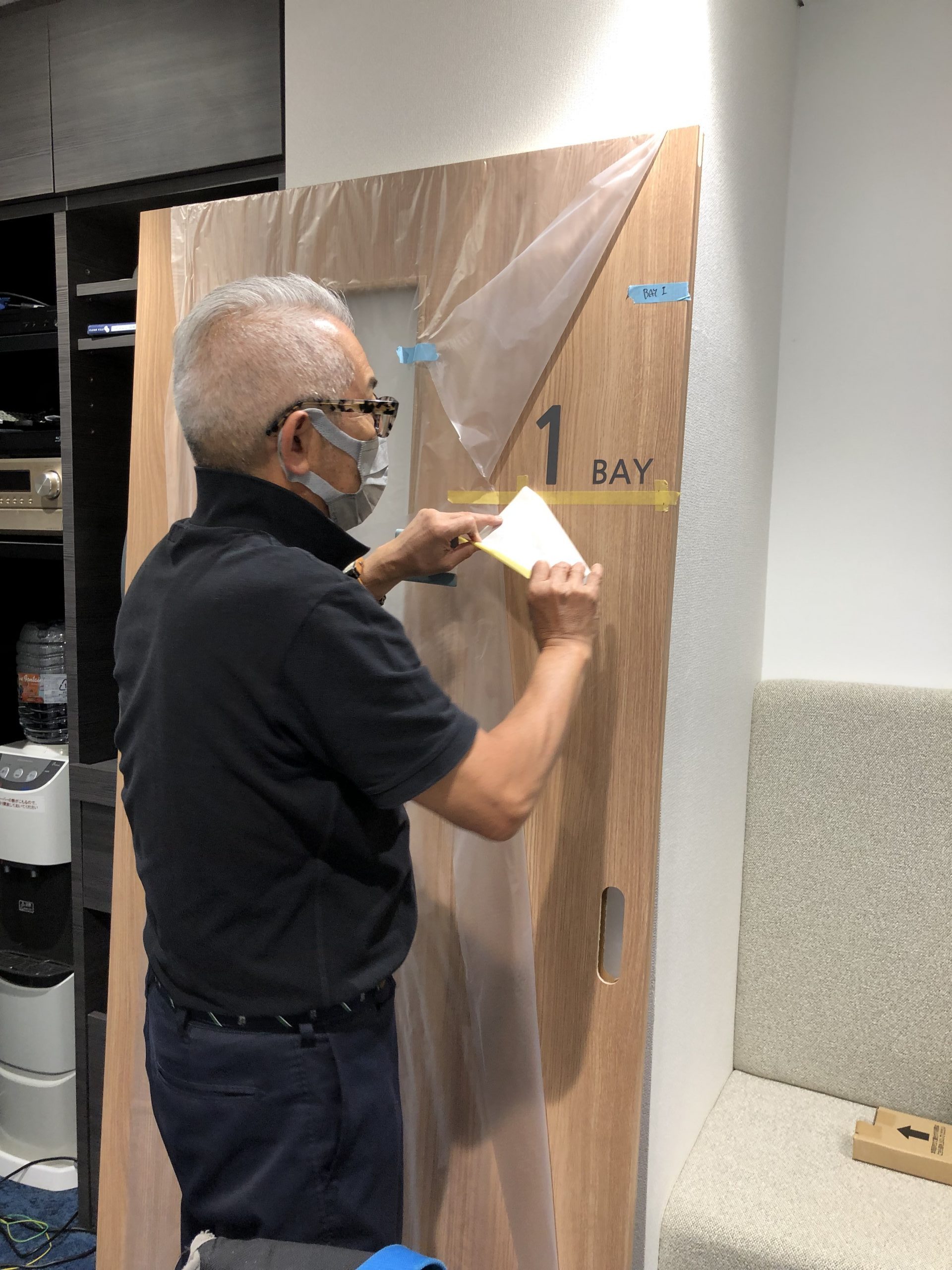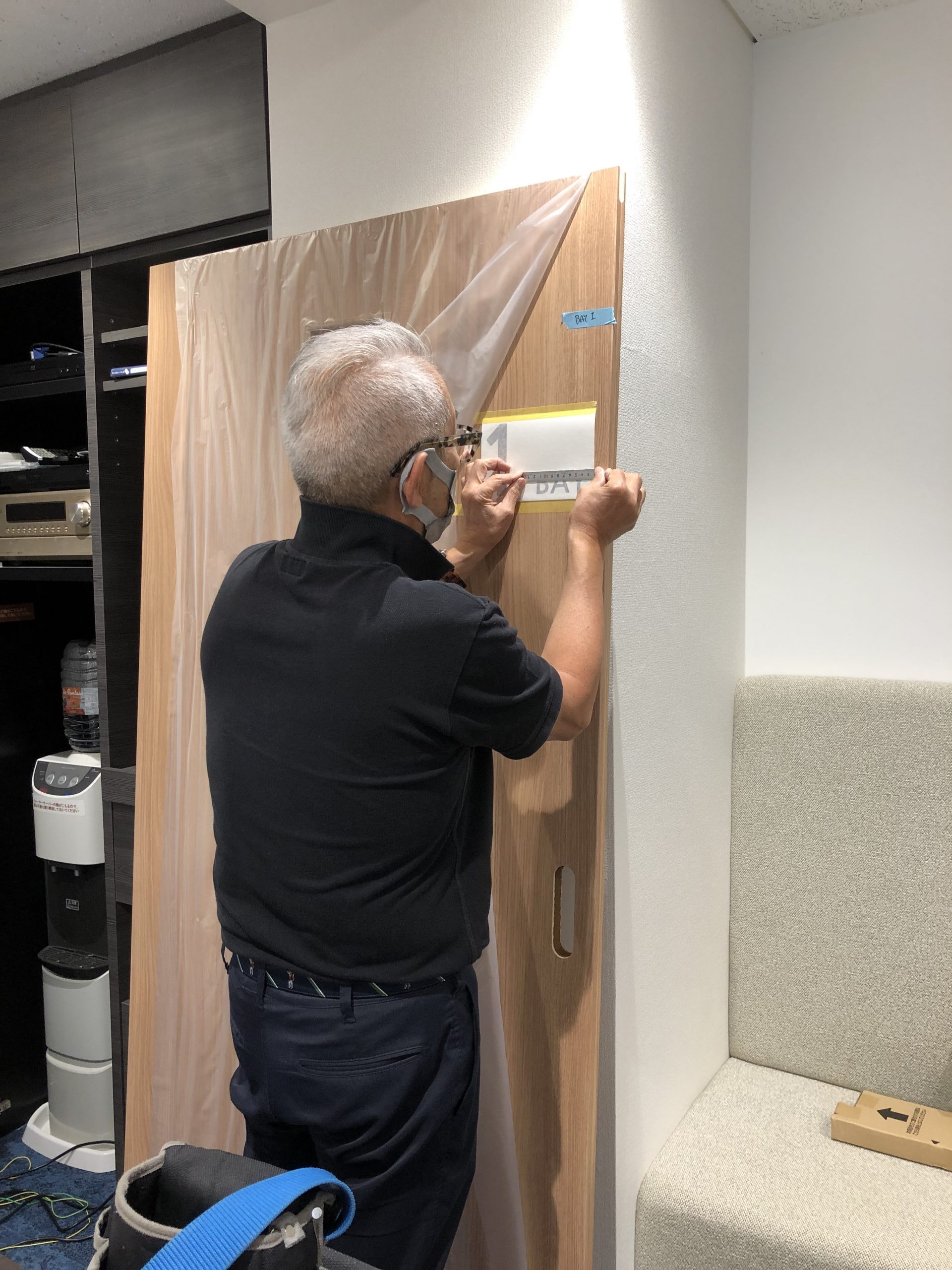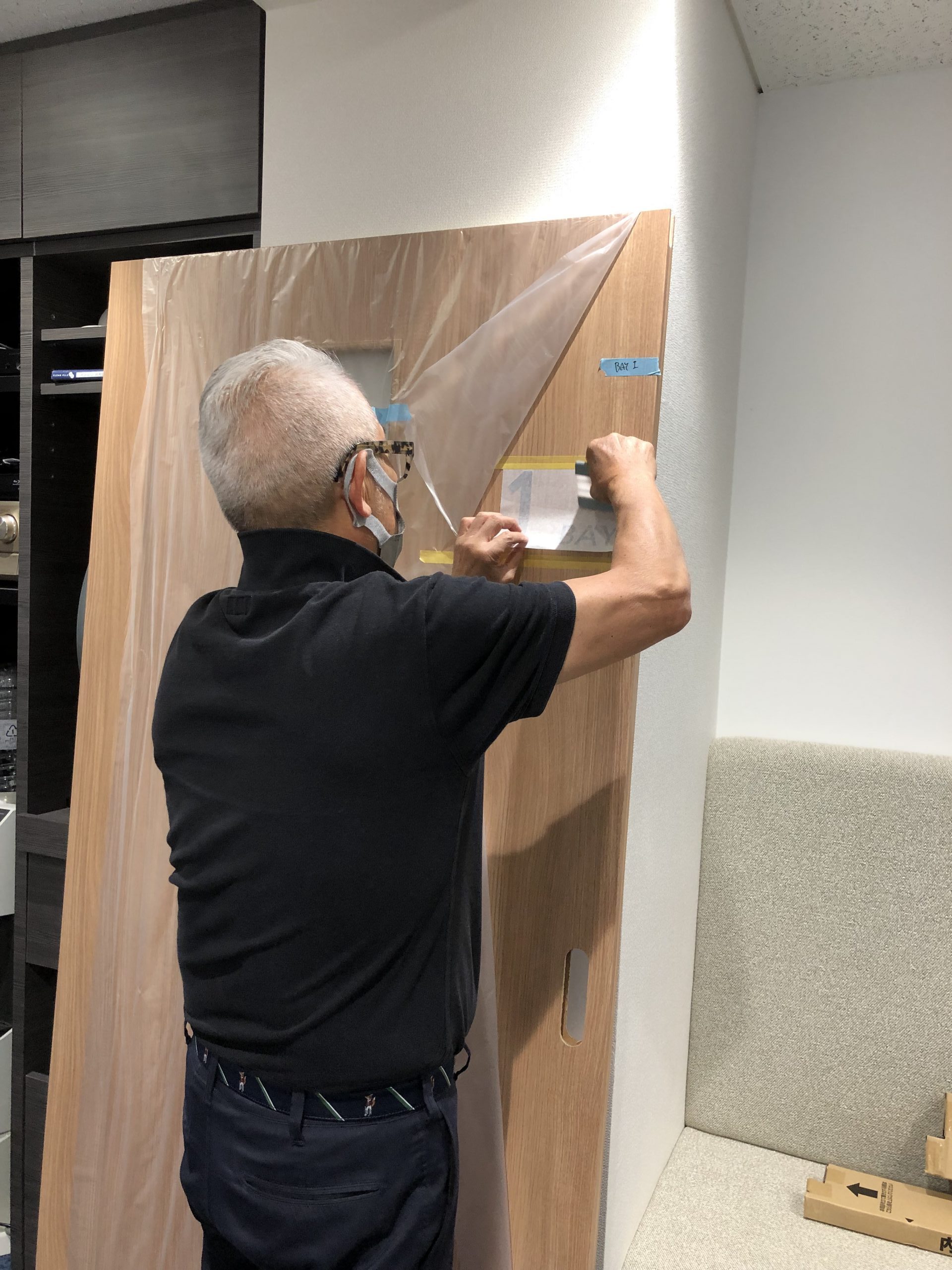 貼る位置が確定したら、カッティングシートを扉に仮留めし、