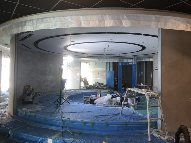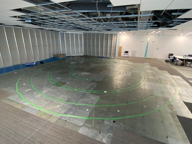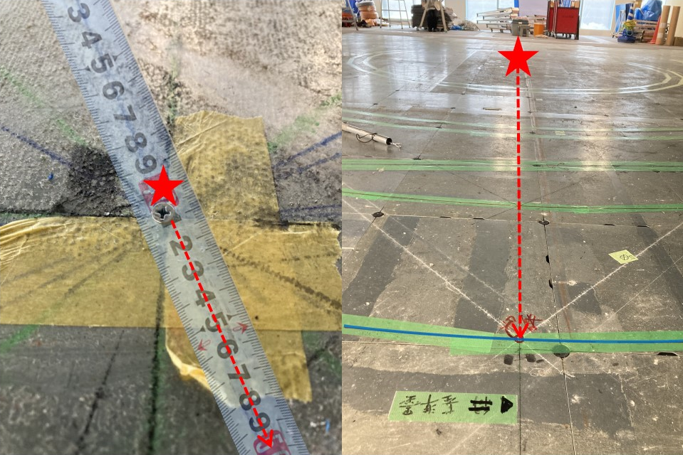 今回は、円形の壁を立てる位置を床に描く作業「墨出」をご紹介します。