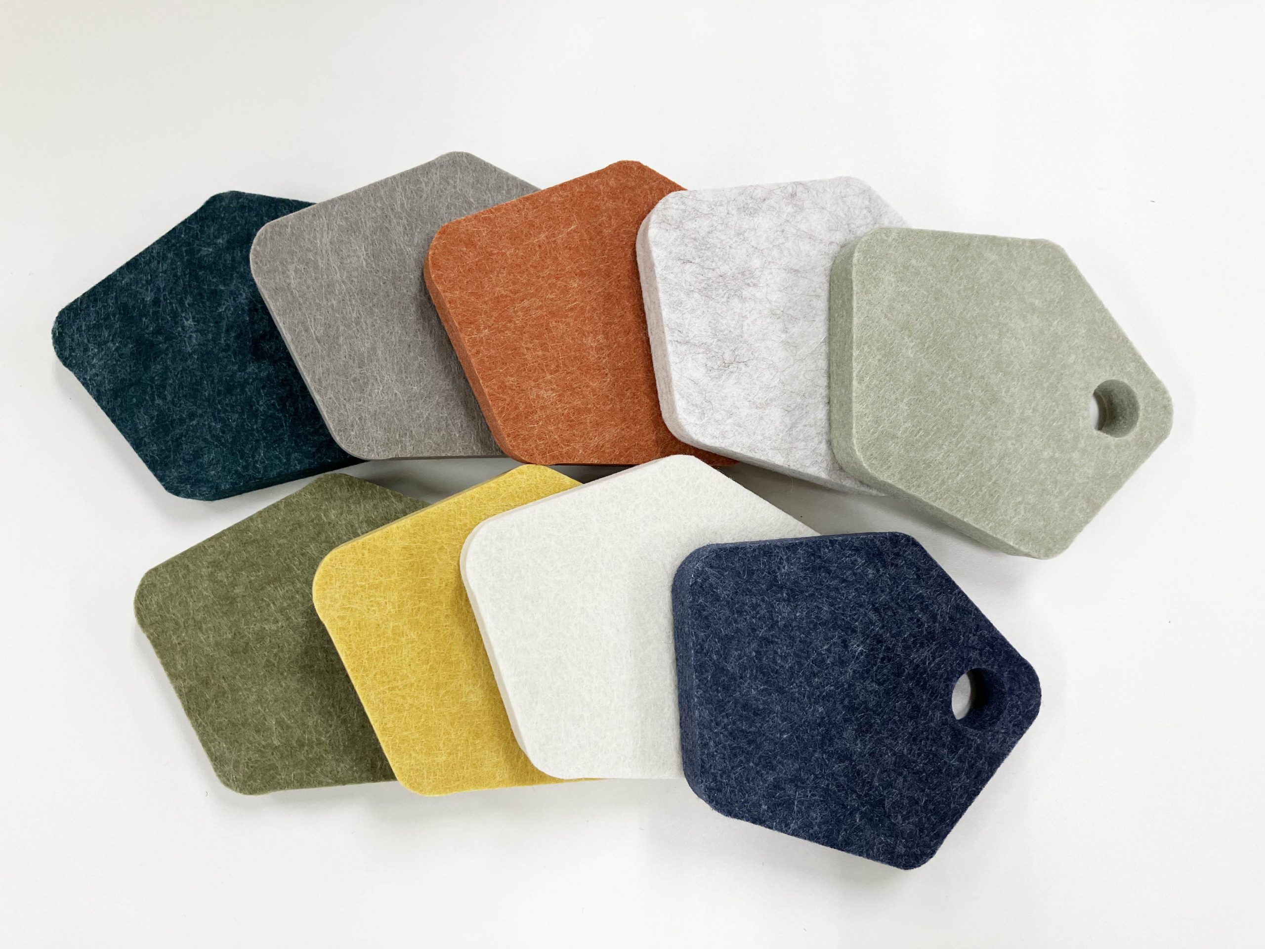 今回の現場では、≒20種類の吸音パネルを部屋ごとに貼り分け使用しました。