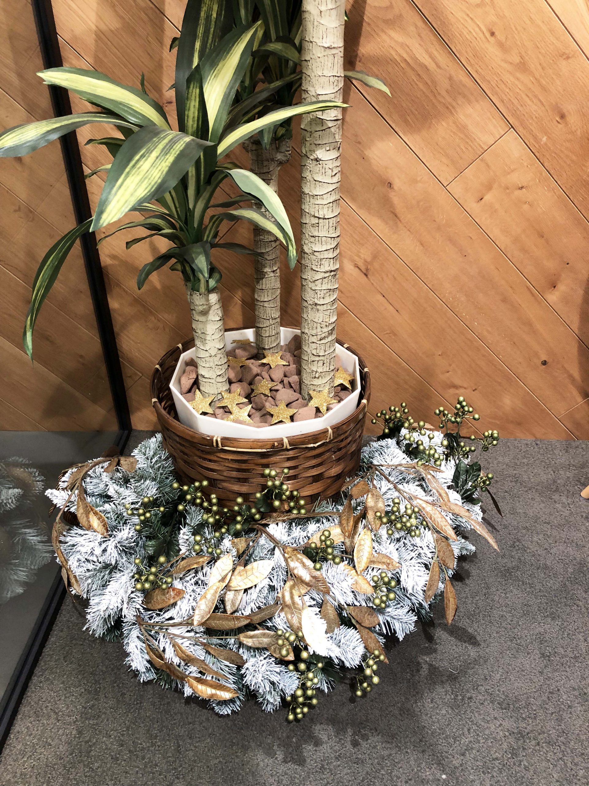 エントランスに通年飾っている観葉植物もクリスマス仕様に変身させました♪