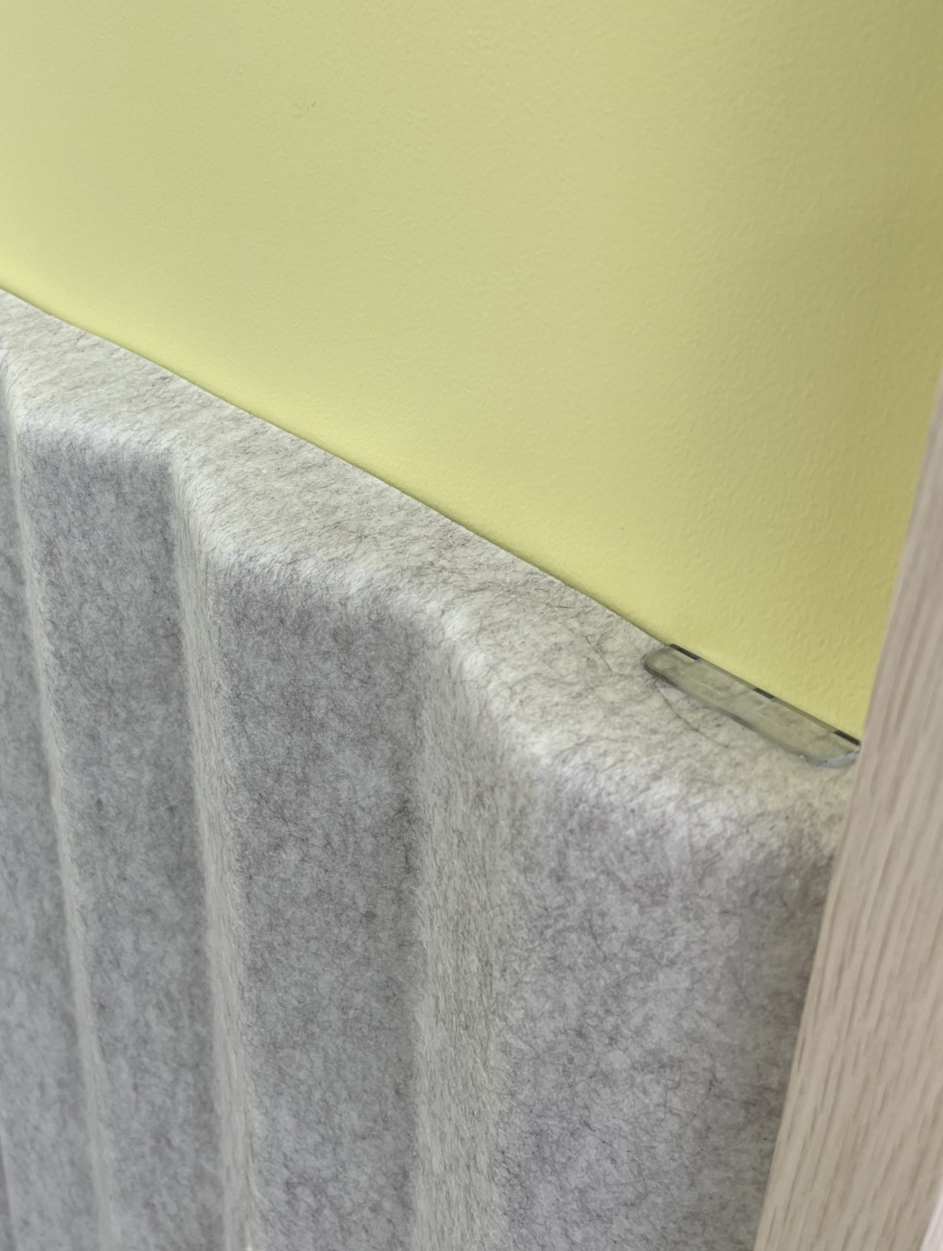 このように壁に固定したクリップに吸音パネルを挟んでいくと…