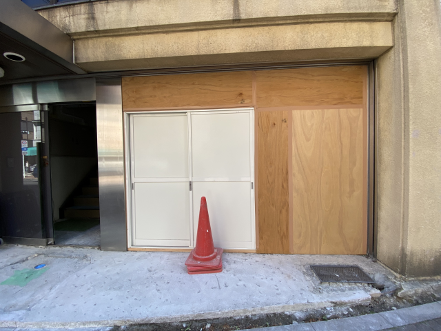 右側をお客様⽤の店舗入口⾃動ドアにするべく、既存のFIXガラスを取り外します。