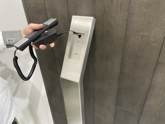 エトランスに受話器を自立させる為のスタンドを施工しました。