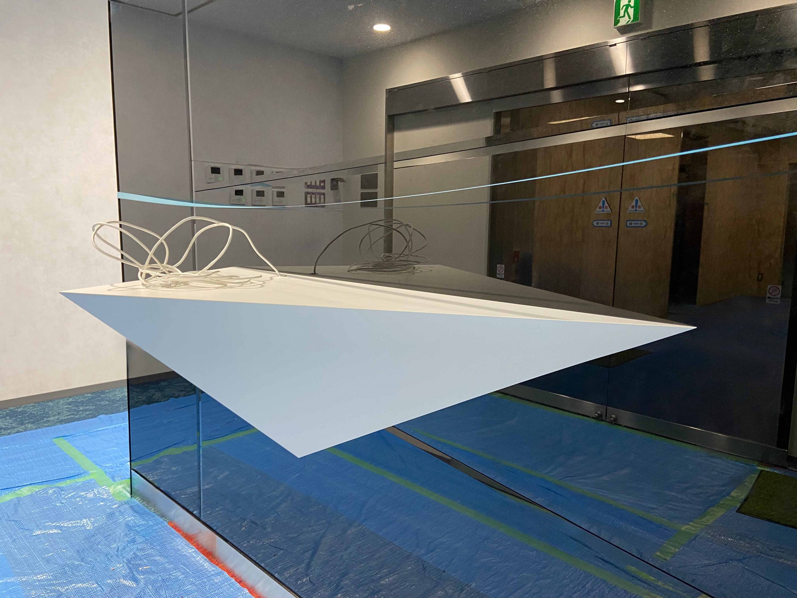 パーティションの上、フカシ壁:St45+PB12.5+ミラーマット3.0+カラーガラスt5.0