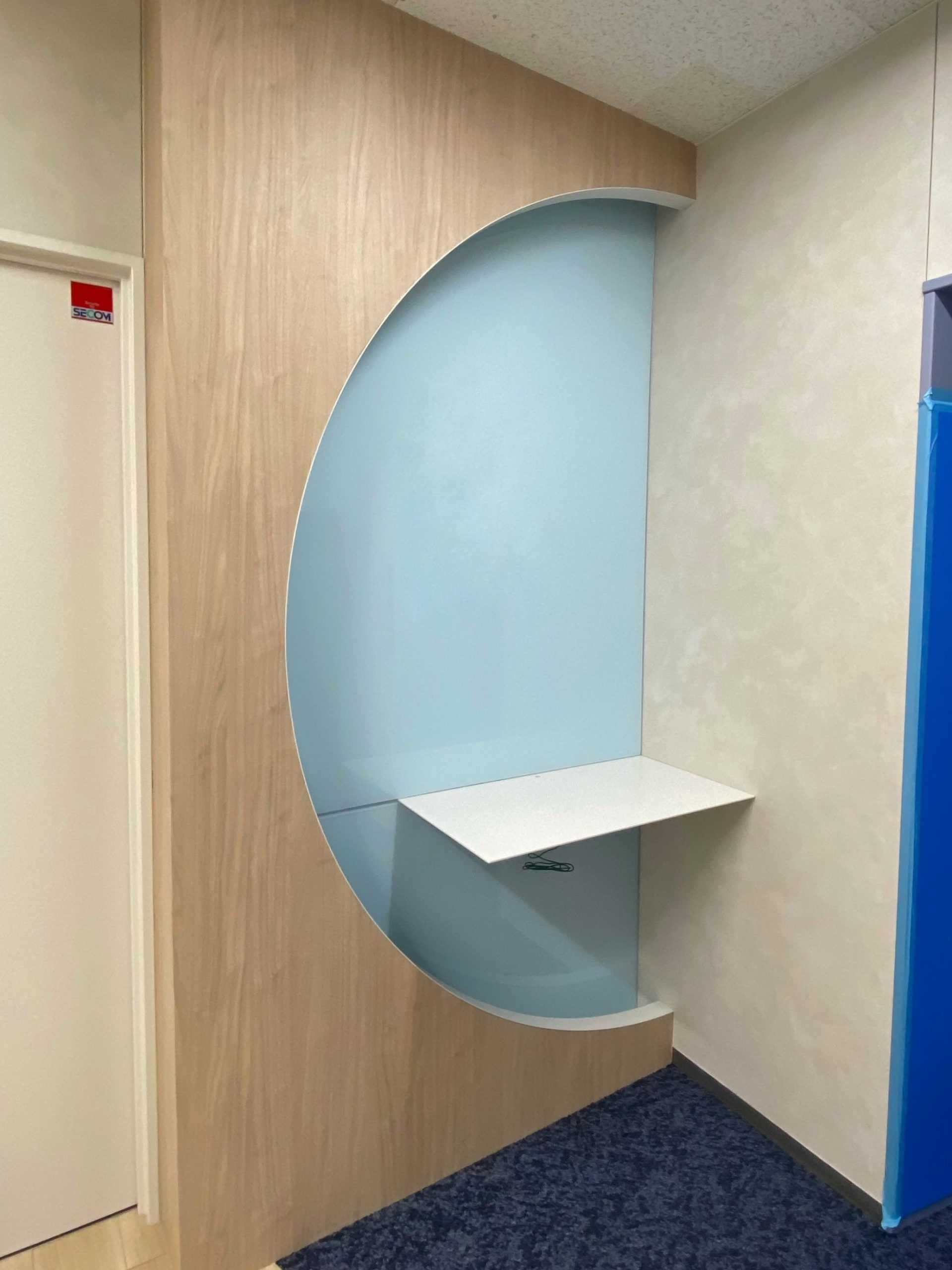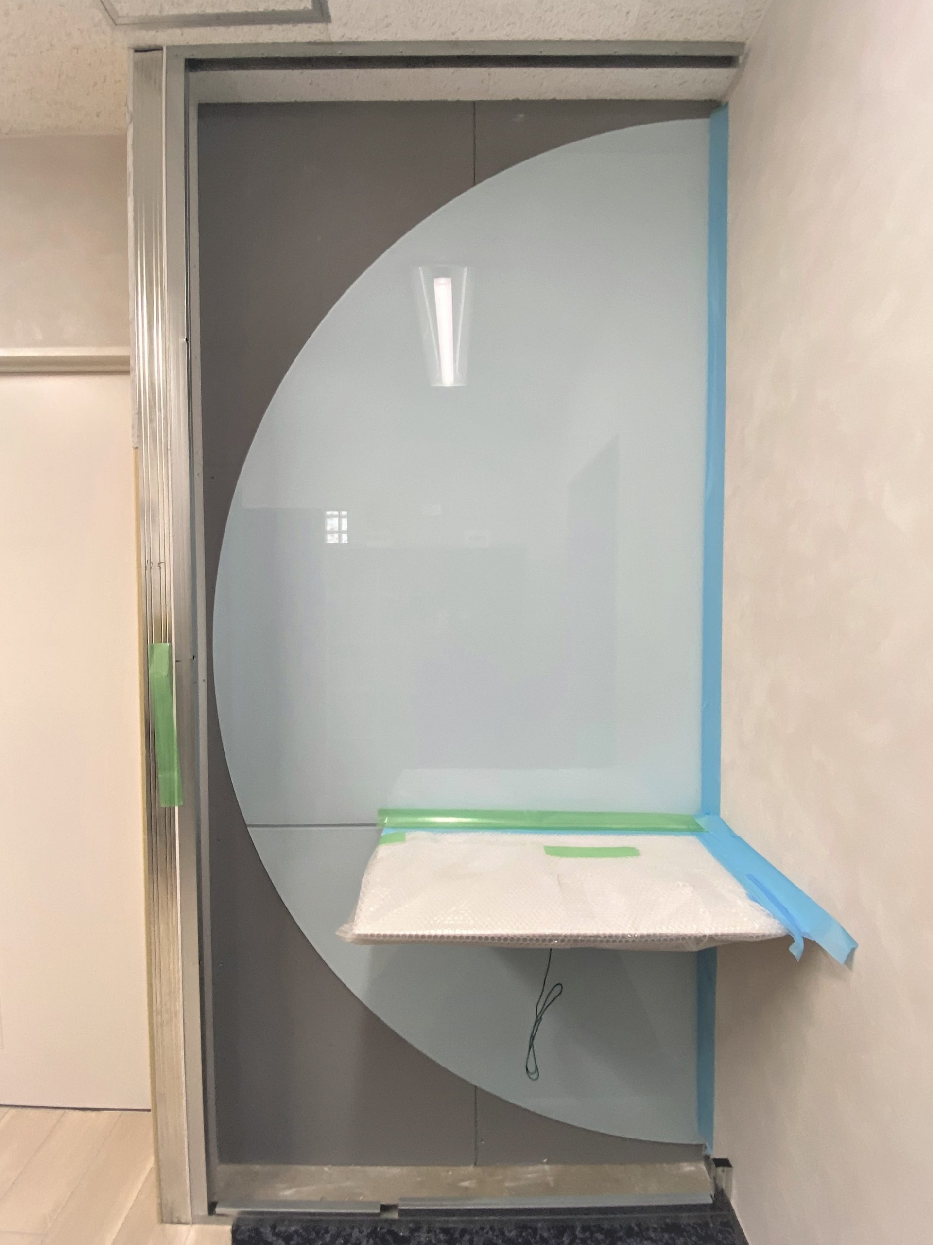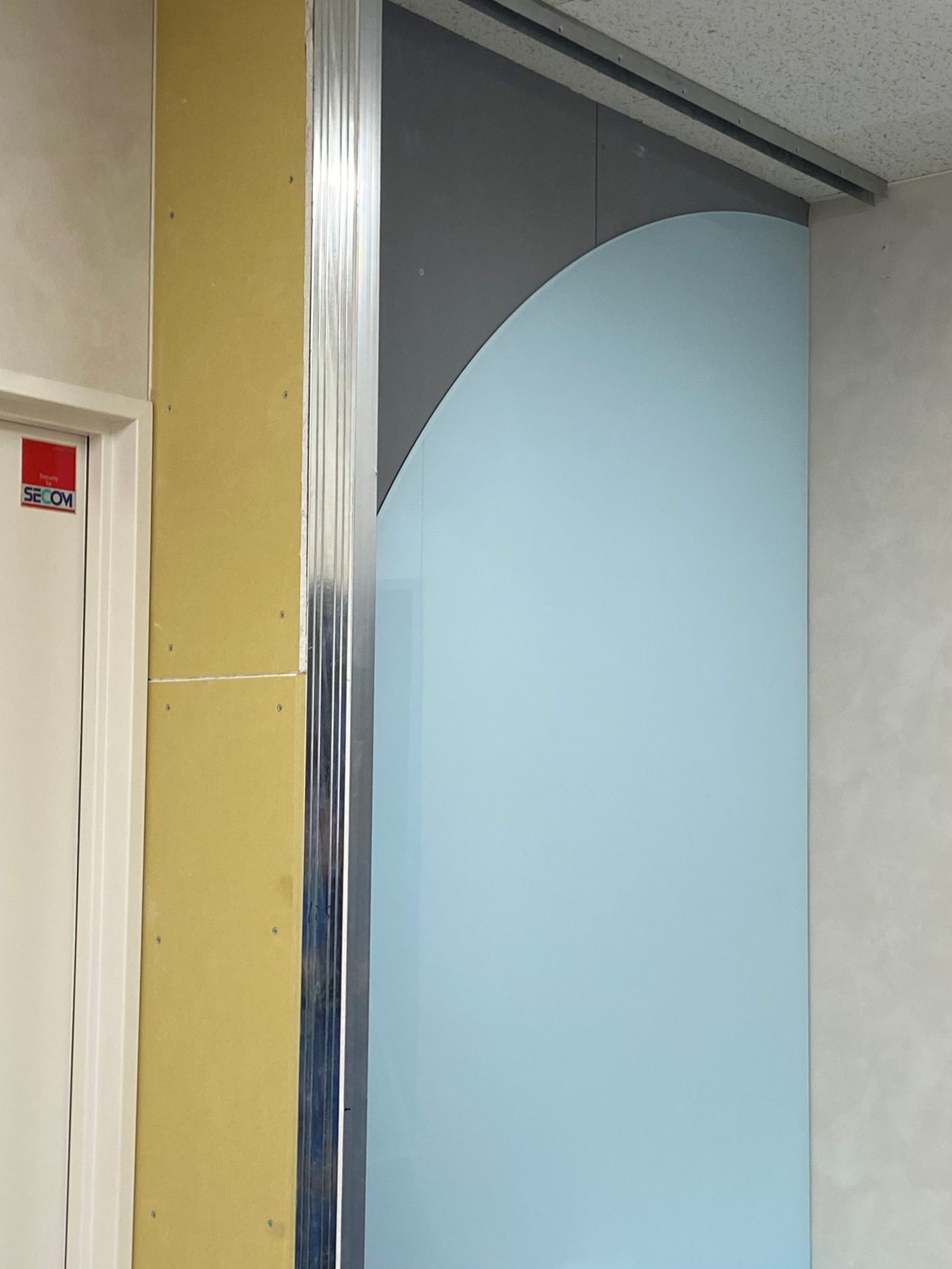 ホワイトボードとして⽩系のカラーガラスを施⼯することが多いイメージなので