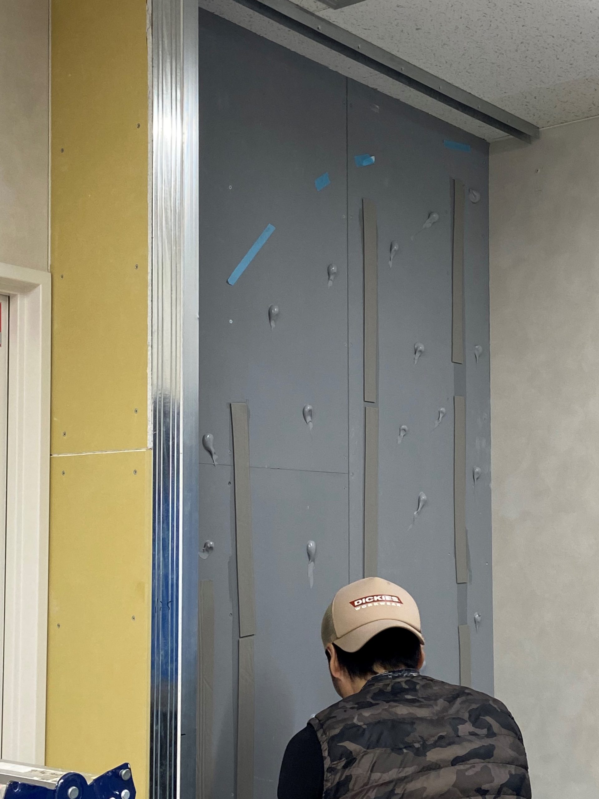 壁下地をグレー塗装で仕上げておくというのがポイントです。